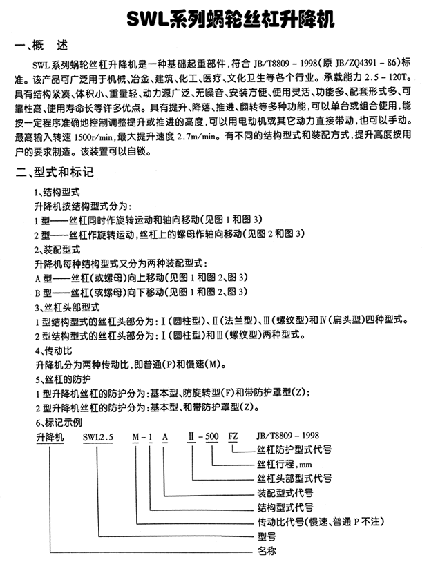 SWL、JWM絲桿升降機(jī) 提升重量0.5-120噸